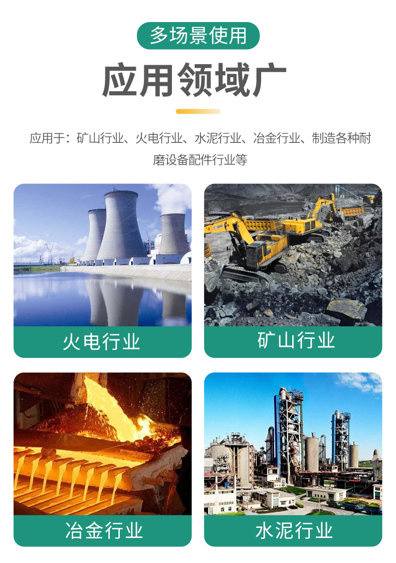 4、無害元素:襯板表面的高鉻合金耐磨層不含鎳、鉬等有害元素,符合環保要求,適用于玻璃、食品等行業。